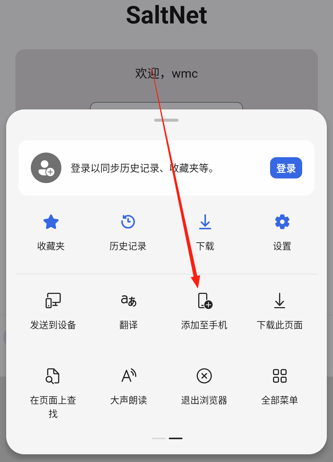 然后选择“添加到手机” / “添加到主屏幕” / “安装到手机”或类似选项。